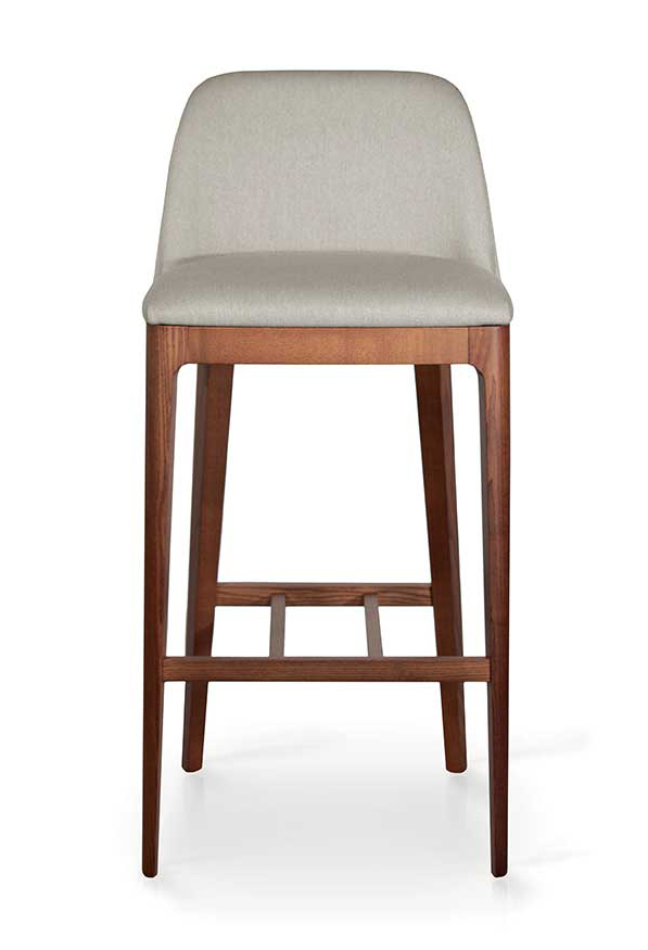 Becky est une gamme de tabourets élégants, dotés d'une structure raffinée à quatre pieds en bois. La coque enveloppante est sublimée par un rembourrage moelleux recouvert de tissu, de cuir ou de similicuir. Sa structure garantit une grande stabilité, ce qui en fait un choix idéal pour la décoration intérieure résidentielle et le secteur de l'hôtellerie-restauration. Tabourets de bar avec structure en frêne massif. Assise et dossier revêtus de cuir, de similicuir ou de tissu de la collection.